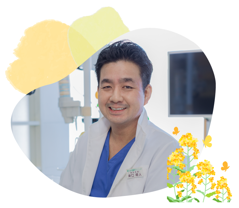 はじめまして。菜のはな歯科クリニック院長の井口です。当院は、柏市にお住まいの皆様のお口の健康をサポートできるよう日々技術の向上を目指し、患者さんが歯医者さんに持つイメージがポジティブなものに変わるよう、安心で的確な治療を心がけています。